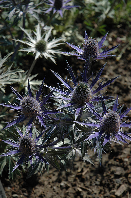 Big Blue Sea Holly will grow to be about 32 inches tall at maturity, with a spread of 24 inches. When grown in masses or used as a bedding plant, individual plants should be spaced approximately 20 inches apart. It grows at a fast rate, and under ideal conditions can be expected to live for approximately 3 years. As an herbaceous perennial, this plant will usually die back to the crown each winter, and will regrow from the base each spring. Be careful not to disturb the crown in late winter when it may not be readily seen!