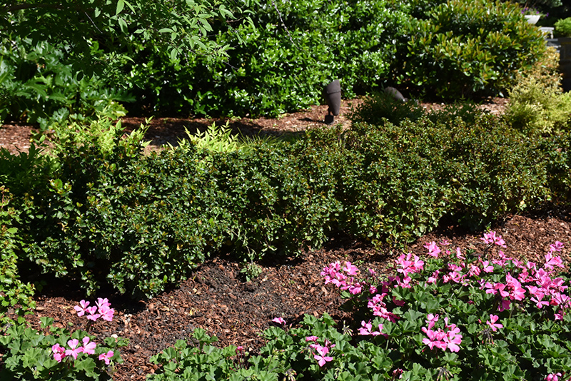Little Rascal® Meserve Holly will grow to be about 24 inches tall at maturity, with a spread of 3 feet. It tends to fill out right to the ground and therefore doesn't necessarily require facer plants in front. It grows at a slow rate, and under ideal conditions can be expected to live for 40 years or more.