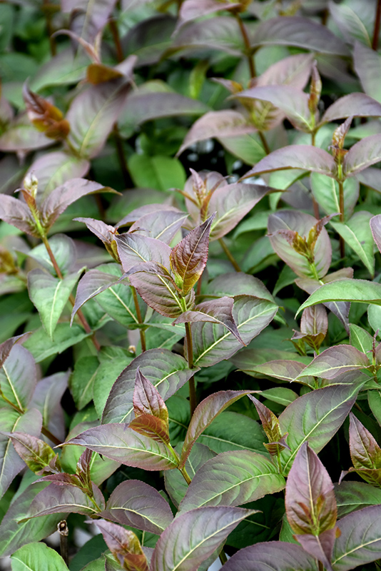 Kodiak® Black Diervilla features showy panicles of yellow trumpet-shaped flowers along the branches from early to mid summer. It has burgundy-variegated dark green foliage with hints of black which emerges dark red in spring. The pointy leaves turn outstanding shades of burgundy and black in the fall.