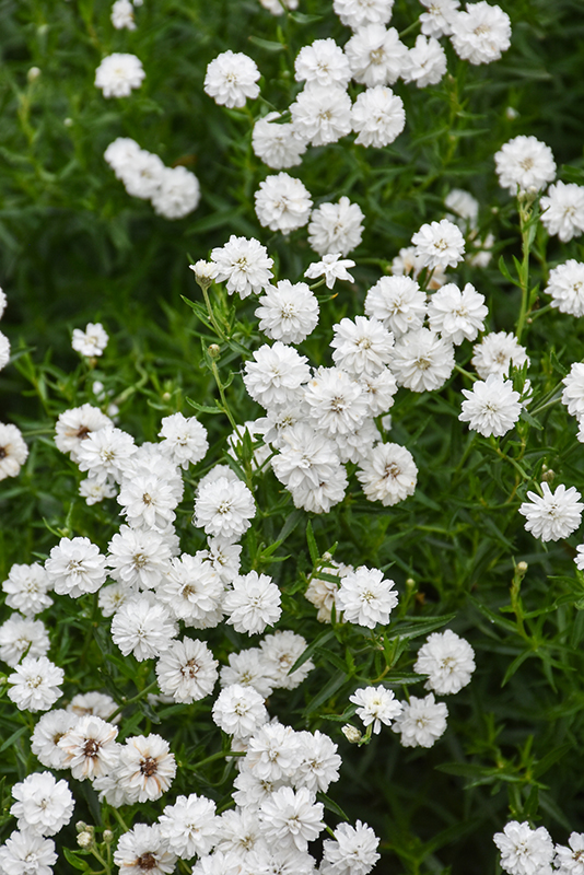 Masses of double white blooms fill the plant all summer, with a look reminiscent of Baby's Breath, over a low, mounding habit of green foliage; low maintenance and easy to grow; a great addition to the garden or containers