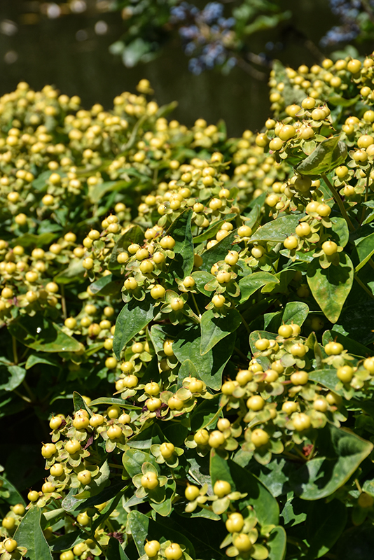 FloralBerry™ Chardonnay St. John's Wort will grow to be about 3 feet tall at maturity, with a spread of 3 feet. It tends to fill out right to the ground and therefore doesn't necessarily require facer plants in front. It grows at a medium rate, and under ideal conditions can be expected to live for approximately 5 years. This is a self-pollinating variety, so it doesn't require a second plant nearby to set fruit.