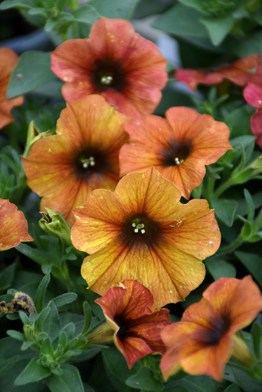 SuperCal® Premium Cinnamon Petchoa will grow to be about 22 inches tall at maturity, with a spread of 32 inches. When grown in masses or used as a bedding plant, individual plants should be spaced approximately 16 inches apart. Its foliage tends to remain dense right to the ground, not requiring facer plants in front. This fast-growing annual will normally live for one full growing season, needing replacement the following year.