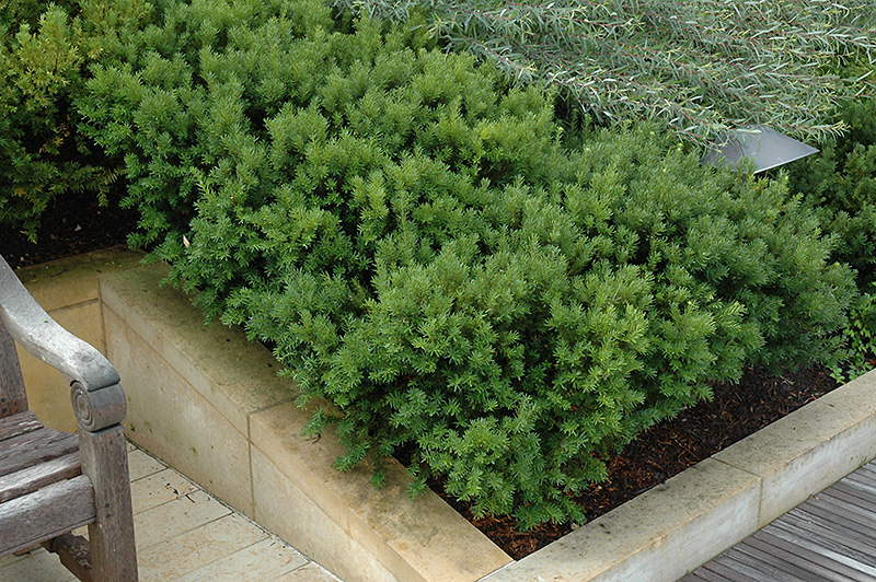 A popular evergreen shrub for the garden with rich dark green needles, new growth is a contrasting bright green in spring and early summer; wide spreading and slow growing, takes pruning very well, performs well in shade, resistant to winter burn
