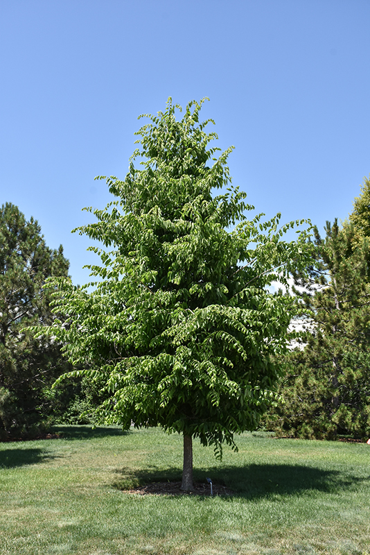 Common Hackberry has rich green deciduous foliage on a tree with a round habit of growth. The pointy leaves turn buttery yellow in fall. The warty gray bark adds an interesting dimension to the landscape.