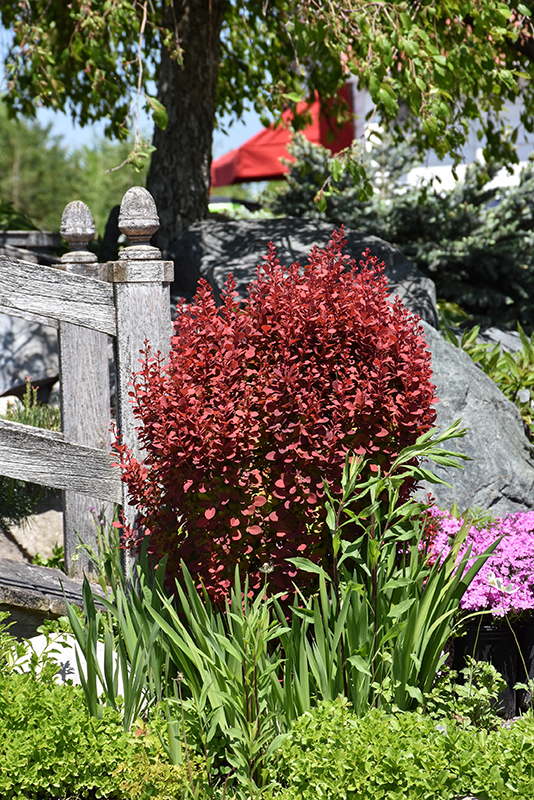 Orange Rocket Japanese Barberry will grow to be about 8 feet tall at maturity, with a spread of 5 feet. It tends to fill out right to the ground and therefore doesn't necessarily require facer plants in front, and is suitable for planting under power lines. It grows at a fast rate, and under ideal conditions can be expected to live for approximately 20 years.